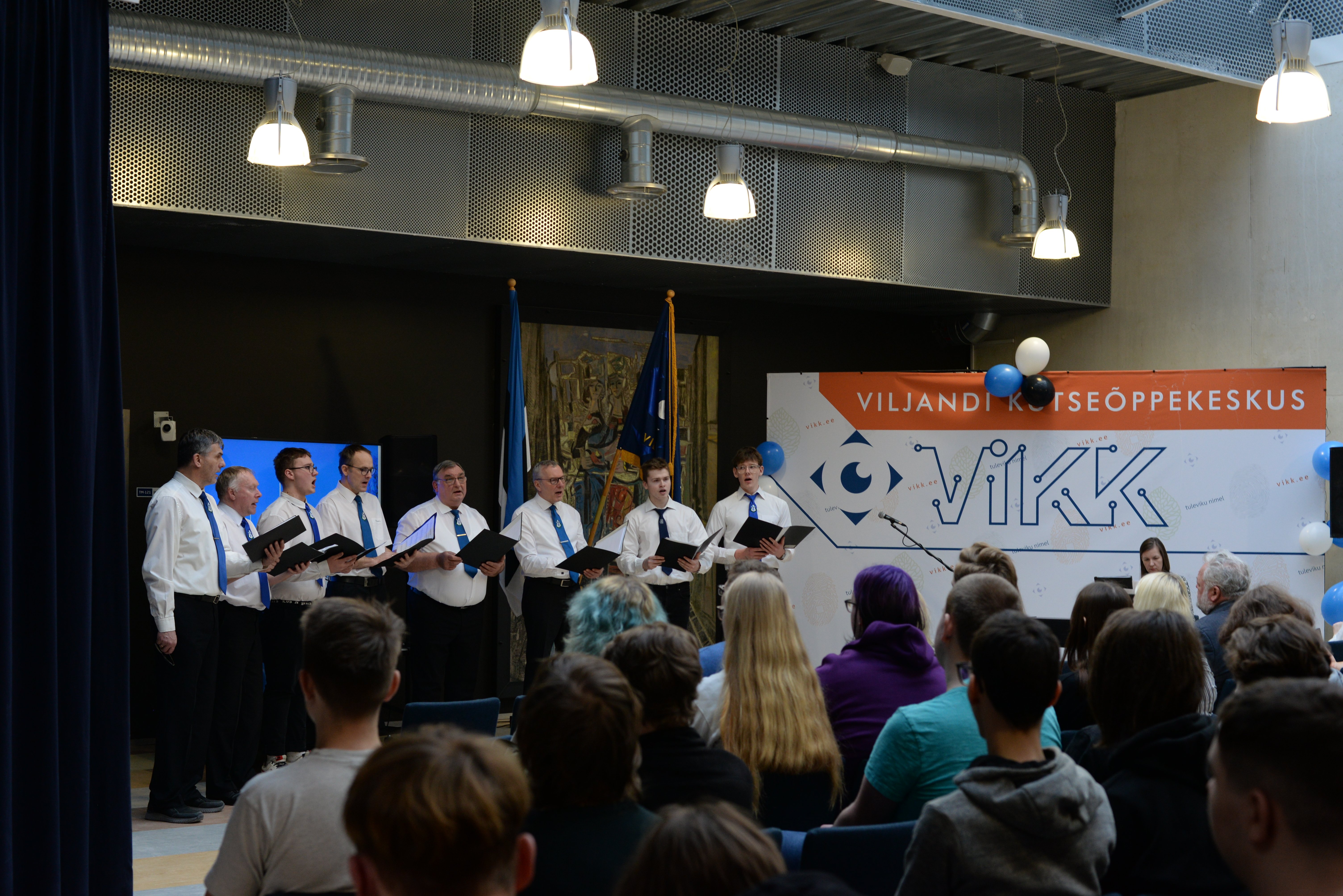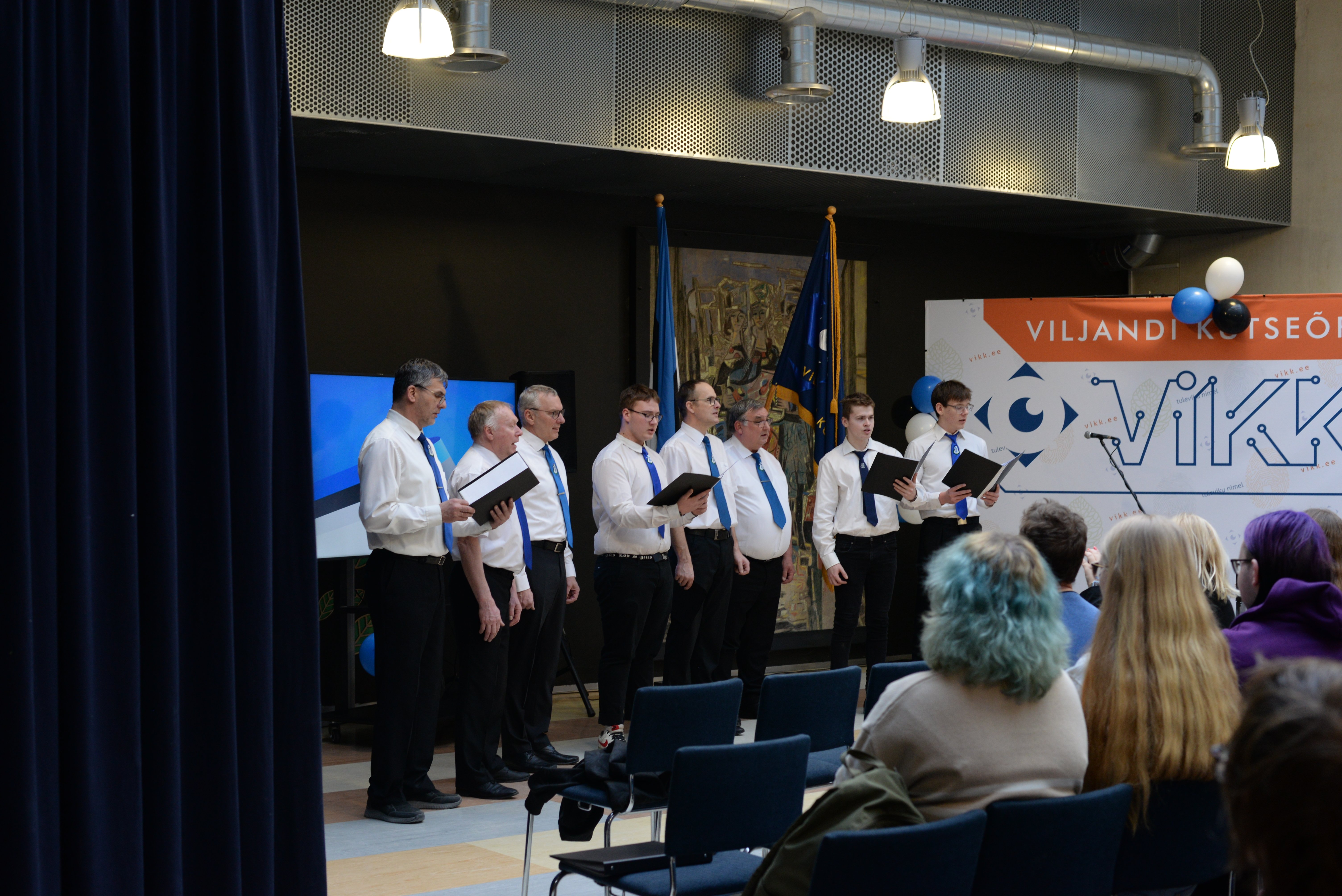 Aktusel esines ka VIKK ansambel, kes täiendas oma esinemist abijõududega Sakala meeskoorist. Koos esitati isamaalisi laule nagu „Eestlaseks olen ja eestlaseks jään“.