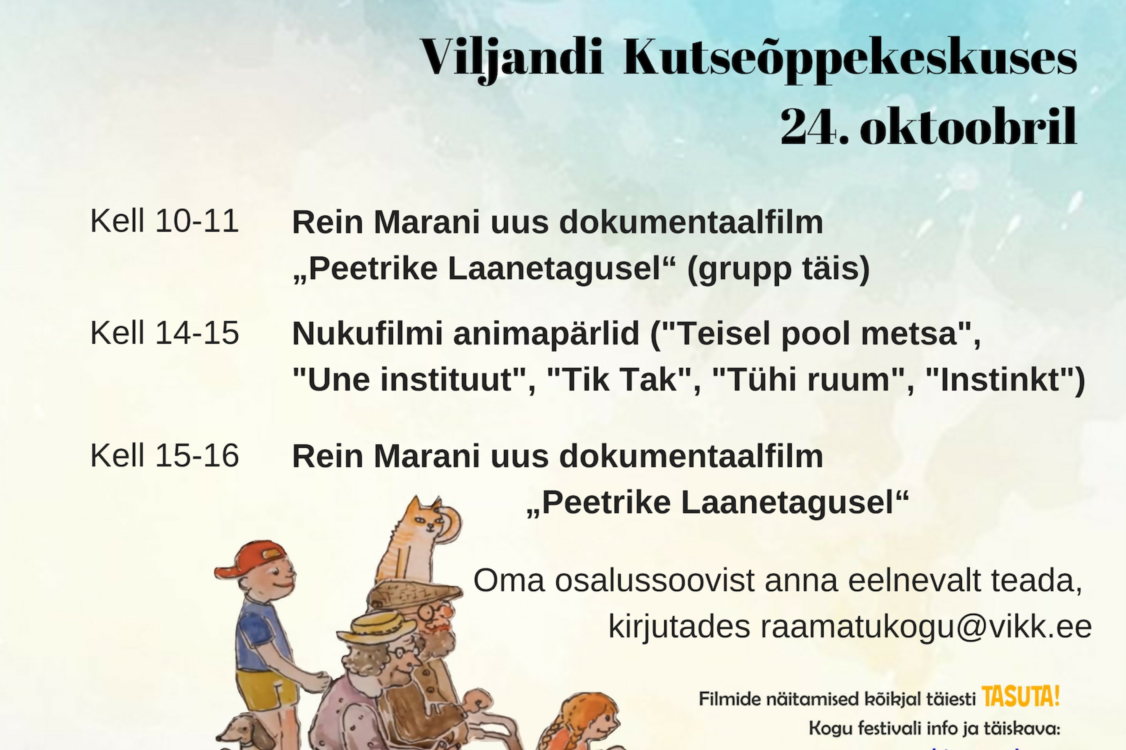 Raamatukogupäevade raames näitame filmifestivali KINO MAALE programmi. Ava foto Ava foto Avaldatud 17.08.2018. Viimati muudetud 26.05.2022.