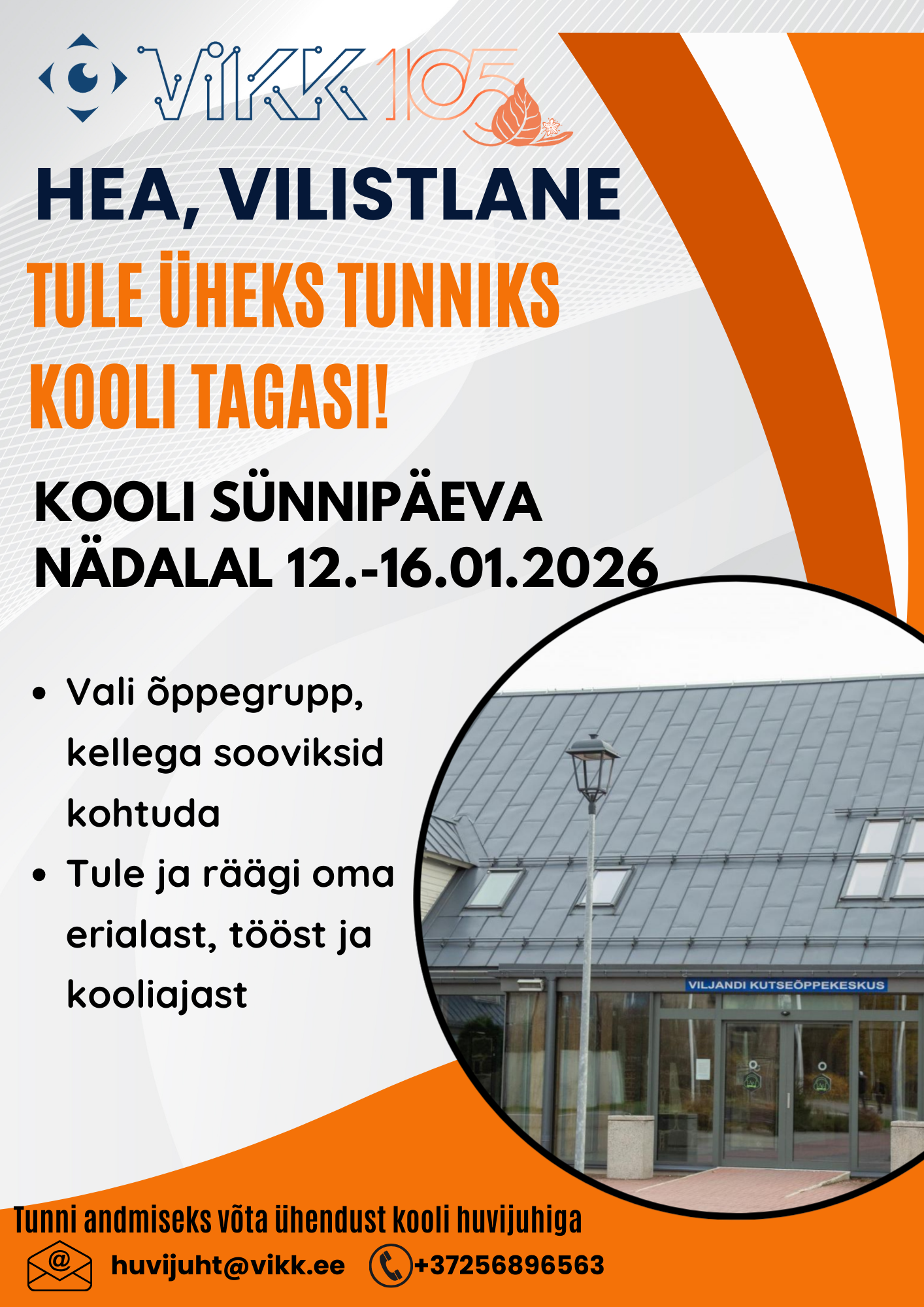 12.–16. jaanuaril 2026 ootab Viljandi Kutseõppekeskus Sind tagasi kooli – terve nädala jooksul!