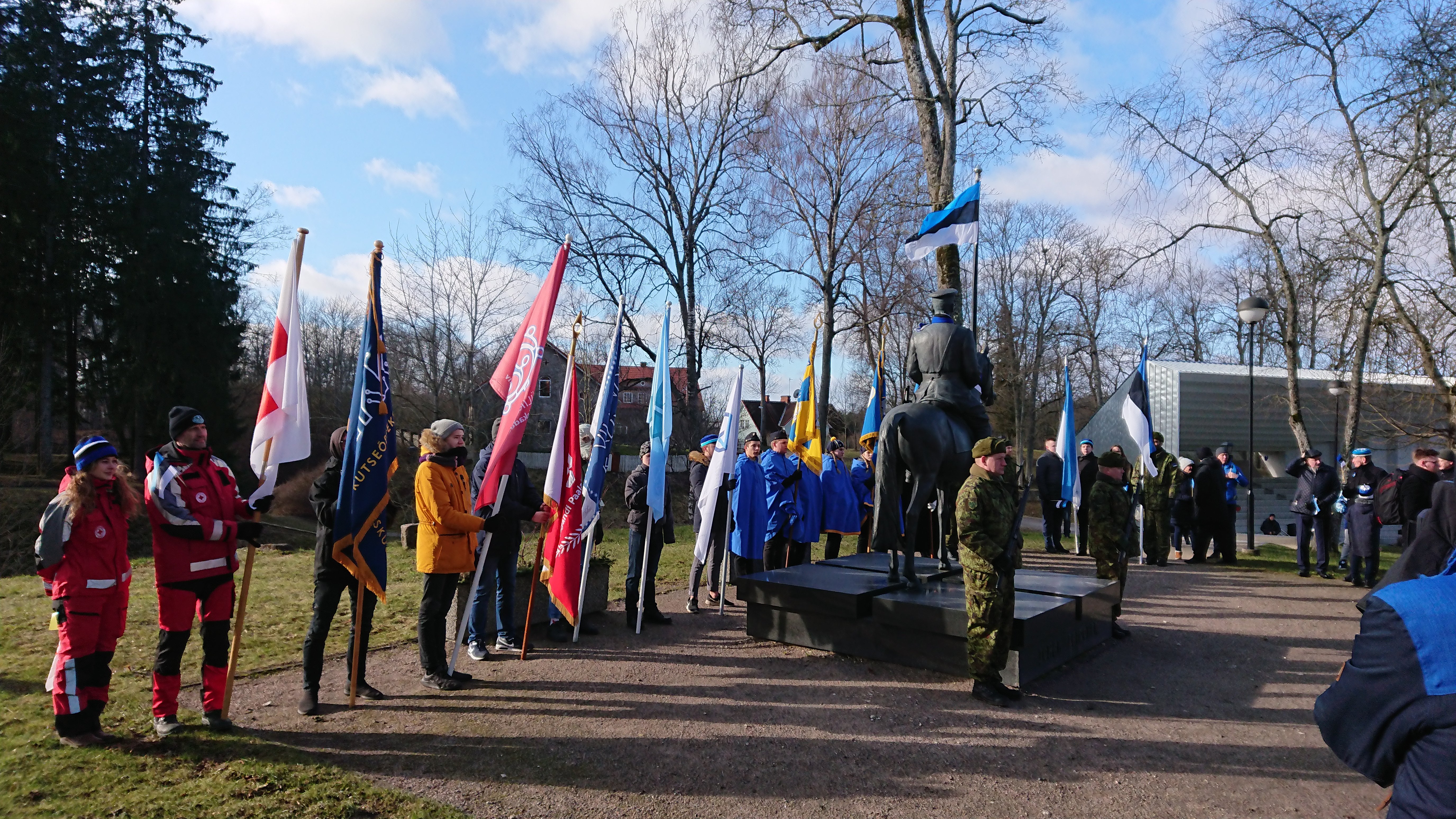 24. veebruaril sammusime koos teiste viljandlastega ühtses rongkäigus kohtumaja eest Laidoneri ratsamonumendi juurde pärgade asetamiseks. Viljandi Kutseõppekeskuse lipumeeskonna moodustasid õpilased Andres Heinsoo, Madis Järve ja Marko Luik. Nende järel marssisid uhkelt Piret Kukk, Marge Hein, Signe Kaasla lastega ning direktor Tarmo Loodus. Rongkäigule elasid kaasa Laine Mitt ja Erki Levit. Lipud lehvisid tuules, rahvas hõiskas. Päike saatis kiiri läbi karge talveõhu, soojendades põski ja südant, justkui lubades helget tulevikku Eestile. Ilusat pidupäeva kõigile!