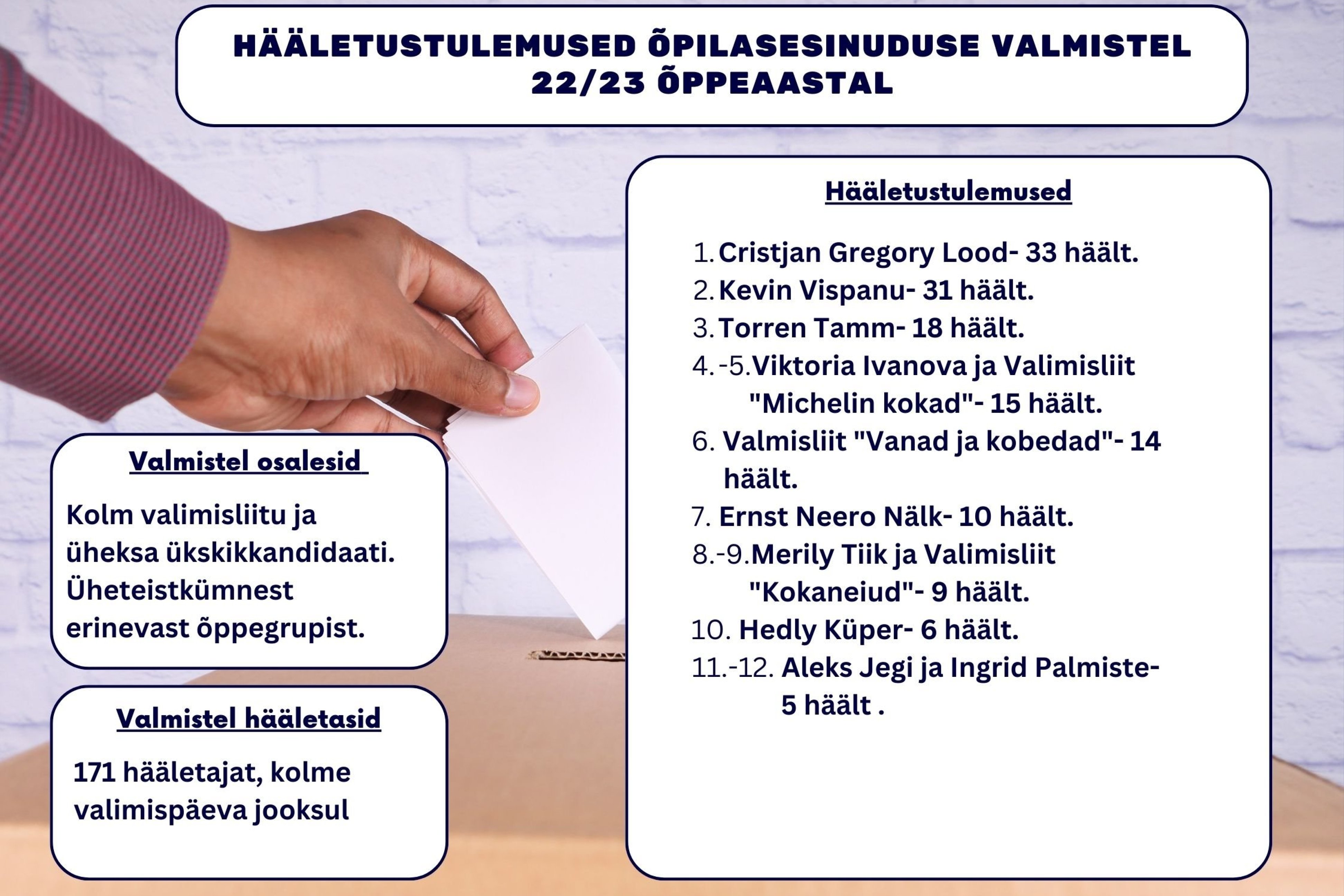 Hääletusel osalesid 171 hääleõiguslikku õpilast.