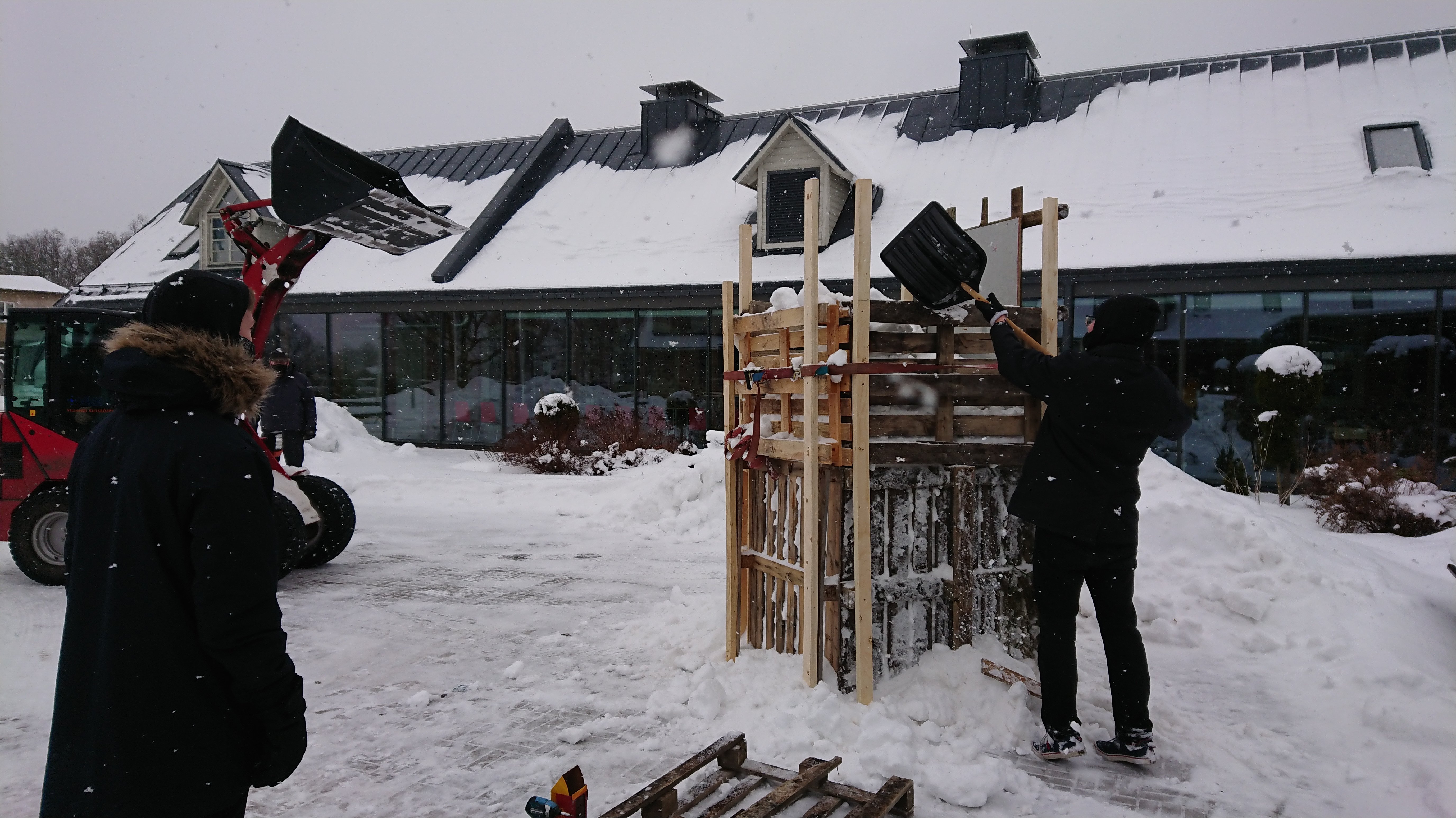 Homme pärastlõunal saavad tiimid asuda sisulise töö juurde ehk hakata kavandite põhjal lumeblokke taguma, lõikama ja lihvima. Loodame, et ilm soosib ettevõtmist ning nädala lõpuks on koolimaja kaunistamas kolm uut kunstiteost.