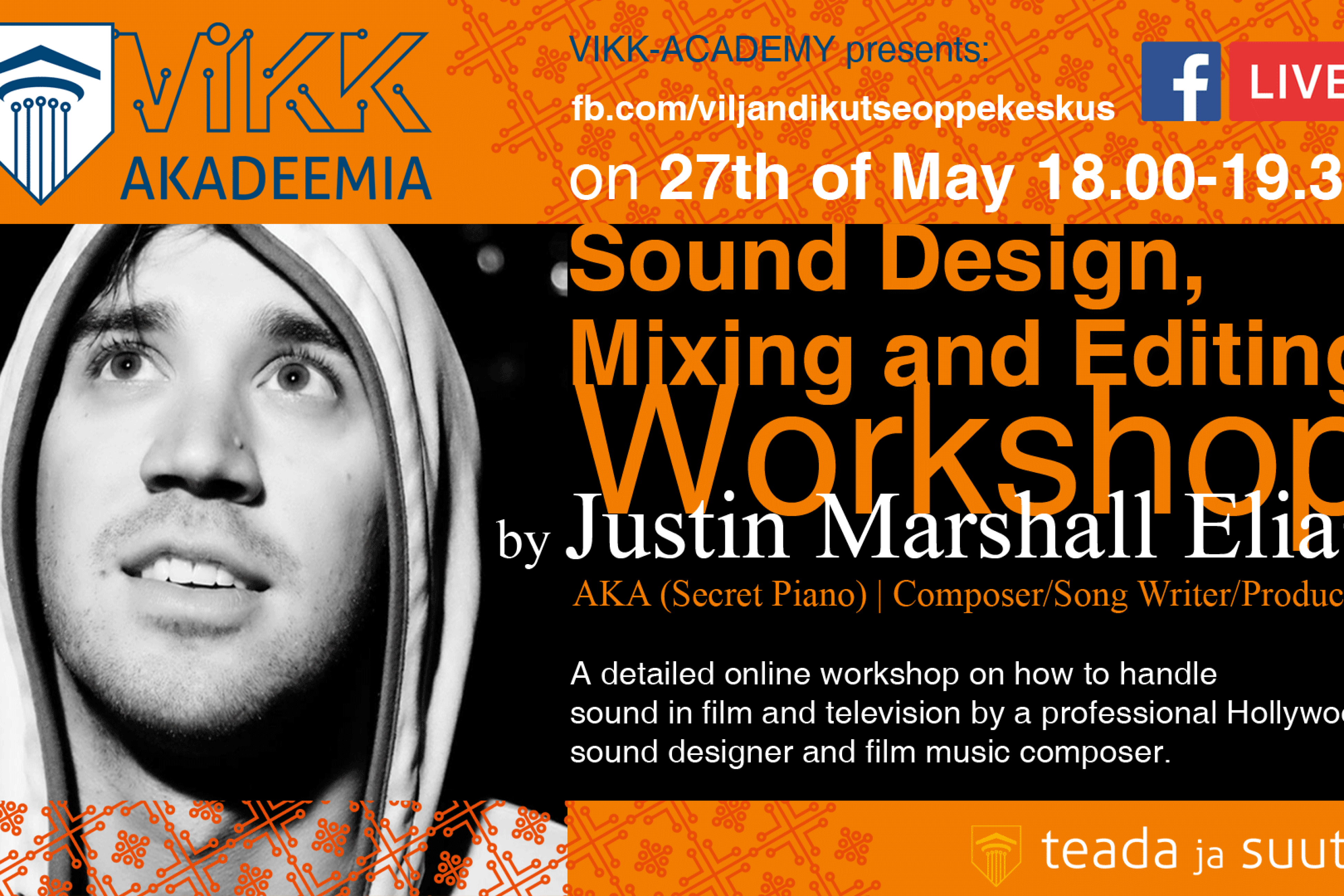 Hollywoodi professionaalne helirežissöör ja filmimuusika helilooja Justin Marshall Elias viib 27. mail algusega kell 18 läbi 90-minutilise ingliskeelse töötoa „Heli kujundamine, segamine ja redigeerimine“. Teemasse süvitsi minevas töötoas õpitakse helikujunduse kasutamist filmides ja televisioonis.